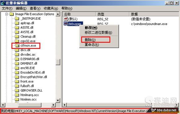 2.手工刪除注冊(cè)表表中病毒寫入的劫持。如圖所示: